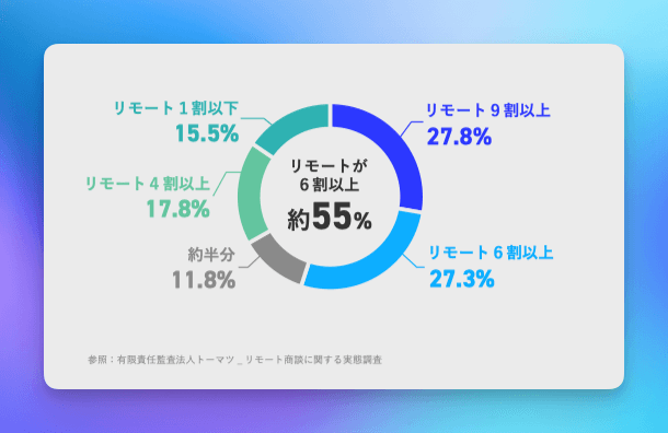 実際に、2020 年度には、緊急事態宣言の発令(4 月 7 日)以降の被営業の経験のうち 55% がリモートをメインとしていることが明らかになっています。